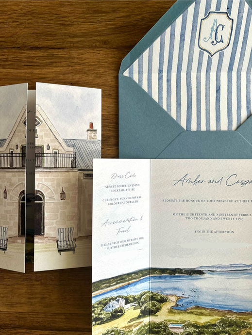 I've always loved art, and I love that I can work with brides and grooms to bring their love story to life. All of the art you see here is 100% hand drawn by me. If you want your wedding stationery to tell a story, through unique hand painted artwork, then get in touch and we can start our creative journey together.